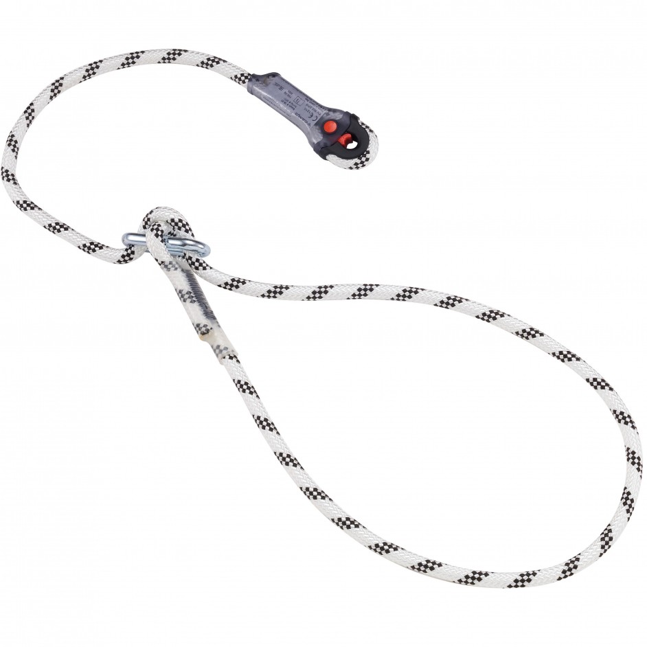 - Camp verstelbare leeflijn 80-125 cm of 115-200 cm. Dit type verstelbare leeflijn heeft een verstevigd genaaid touweinde wat slijtage van het touw verminderd. Het touw is een 10,5 mm statische lijn conform EN 1891/A met een breeksterkte van 27,5 kN. De ring is vervaardigd uit verzinkt staal.